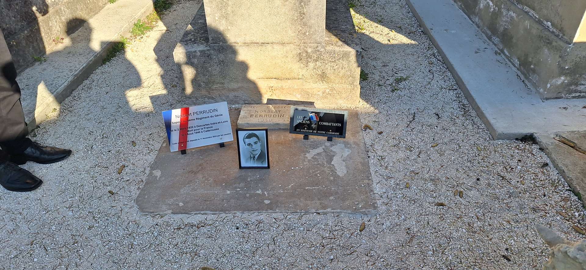 Sur cette plaque une simple épitaphe : Ici repose Norbert Perrudin 1940.